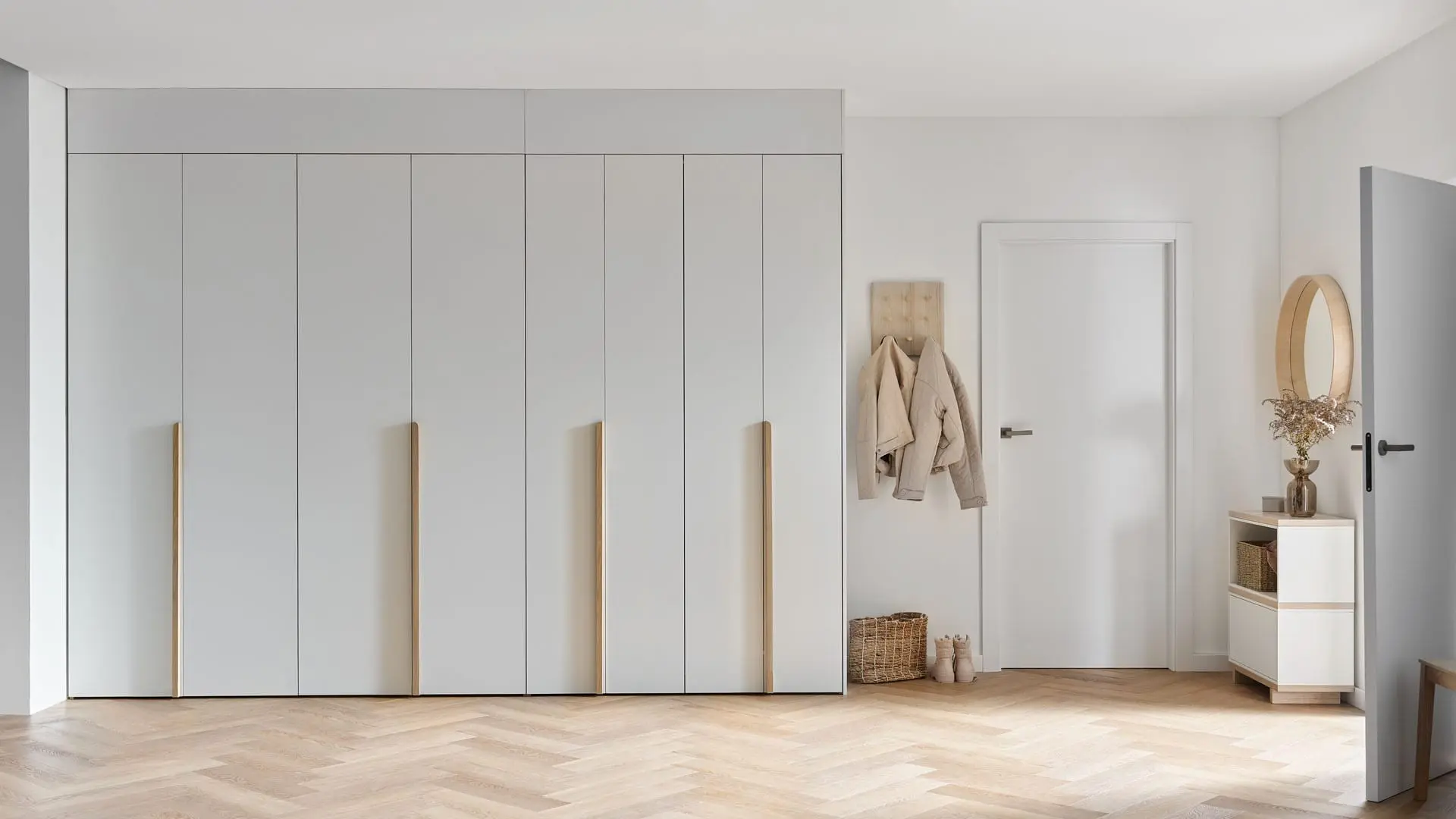 Dopasowane fronty i spójny kolor sprawią, że szafa „wtopi się” w aranżację.