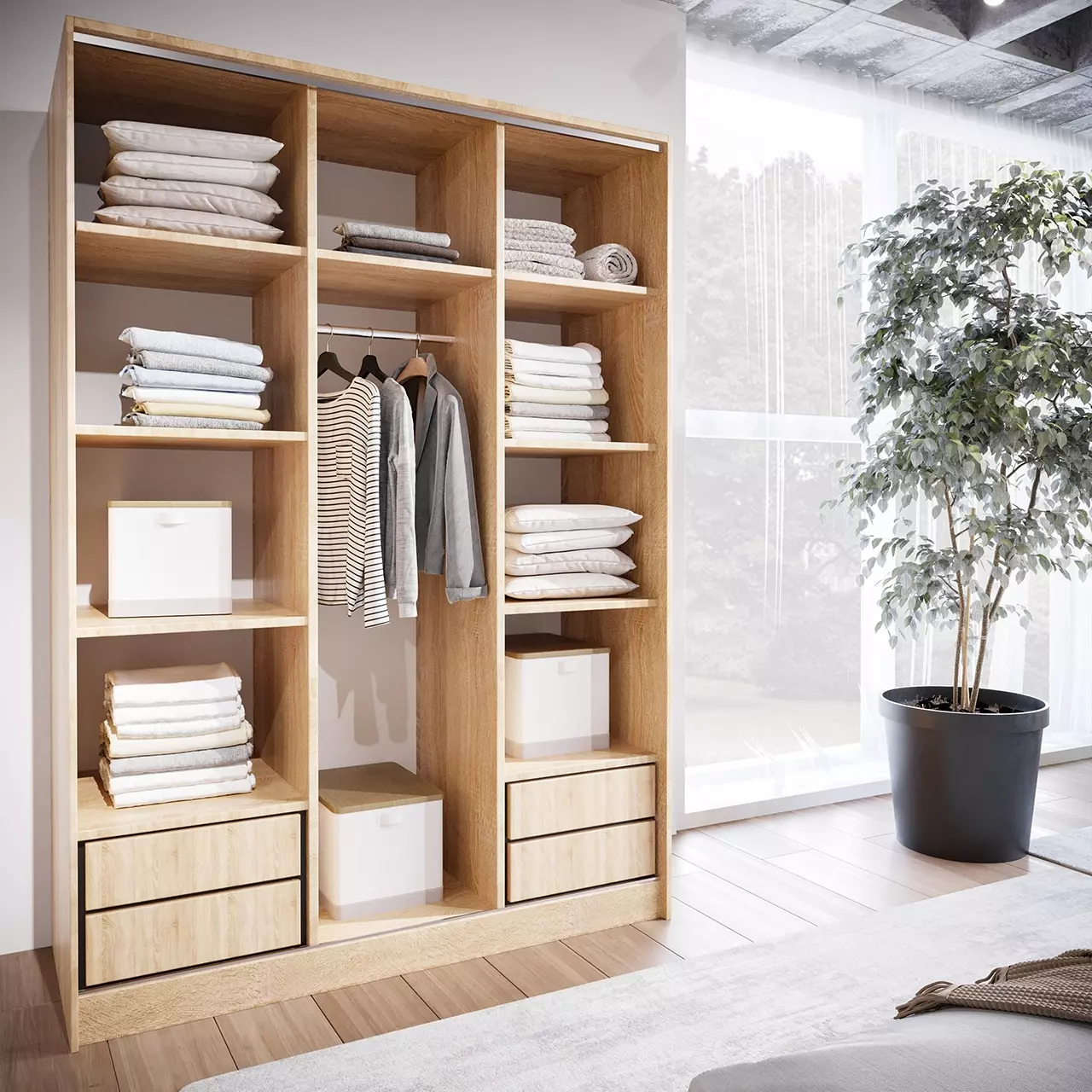 Rozsądna konfiguracja? Modułowość. Przestawne półki, możliwość dołożenia szuflad, podział na strefy krótkiego i długiego wieszania. Właśnie tu pojawia się sensowna tania szafa na ubrania z Mebline.pl, która nie zmusza do kompromisów funkcjonalnych.