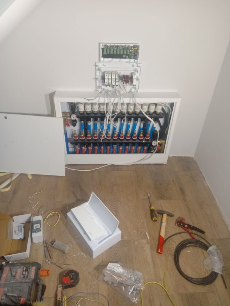 Musiałem wykonać prace w jednej garderobie oraz pod schodami oraz montaż termostatów w pomieszczeniach.